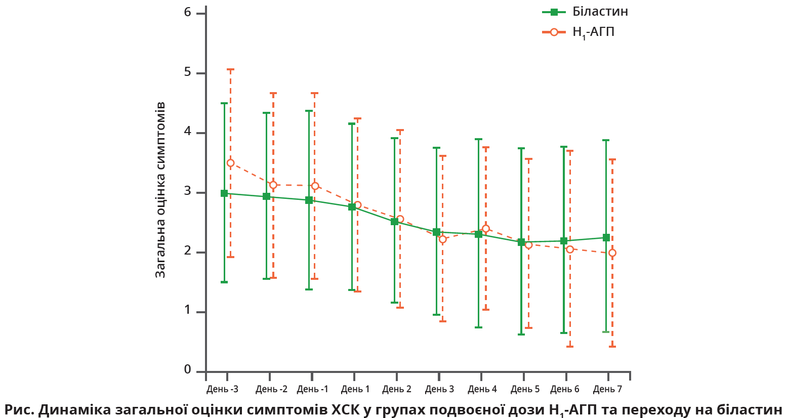 Для біластину й подвійних доз Н1-АГП другого покоління не було виявлено різниці за динамікою оцінки за шкалою кропив’янки та якістю життя.