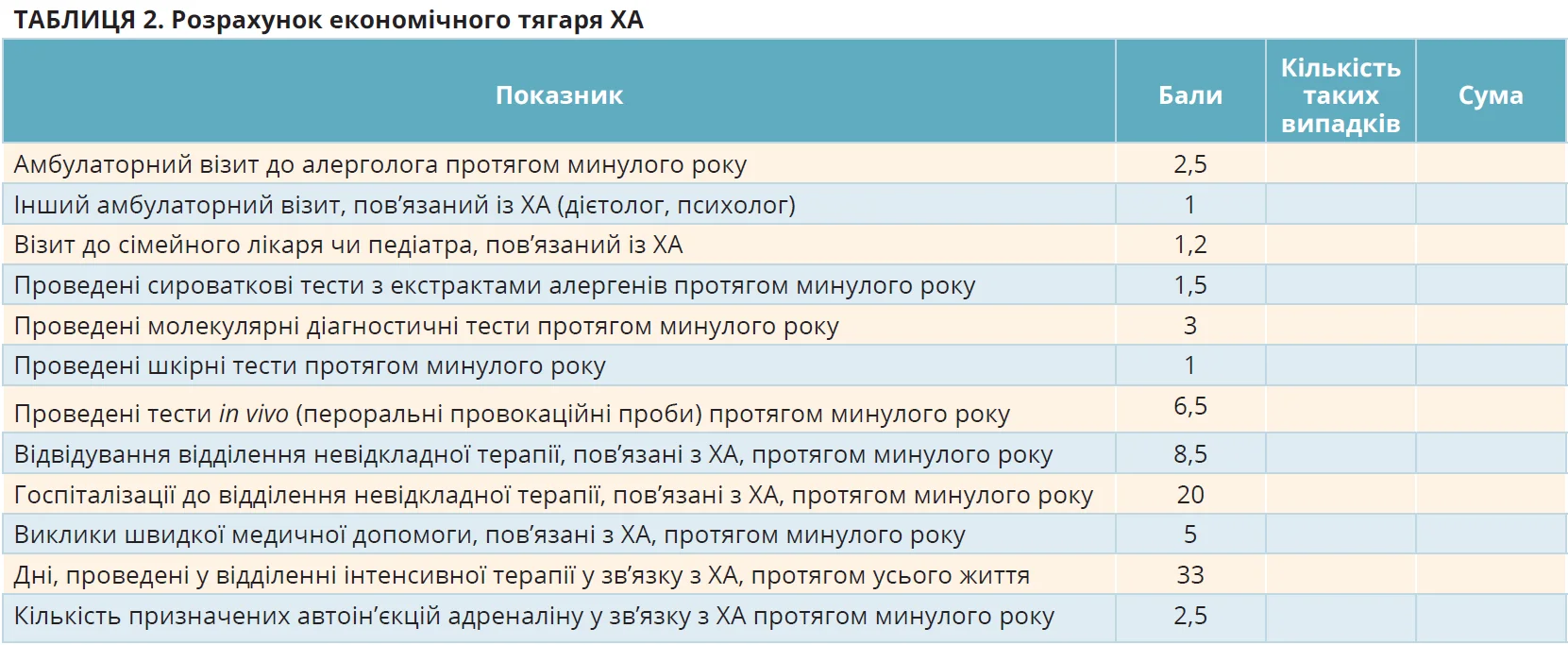 Окрема робоча група, яка включала фахівців із 15 країн, працювала з економічним аспектом оцінки тяжкості ХА, сформувавши шкалу тяжкості економічного впливу ХА (табл. 2). Для оцінки економічного тягаря ХА значення кожного показника слід помножити на кількість таких випадків протягом останнього року.