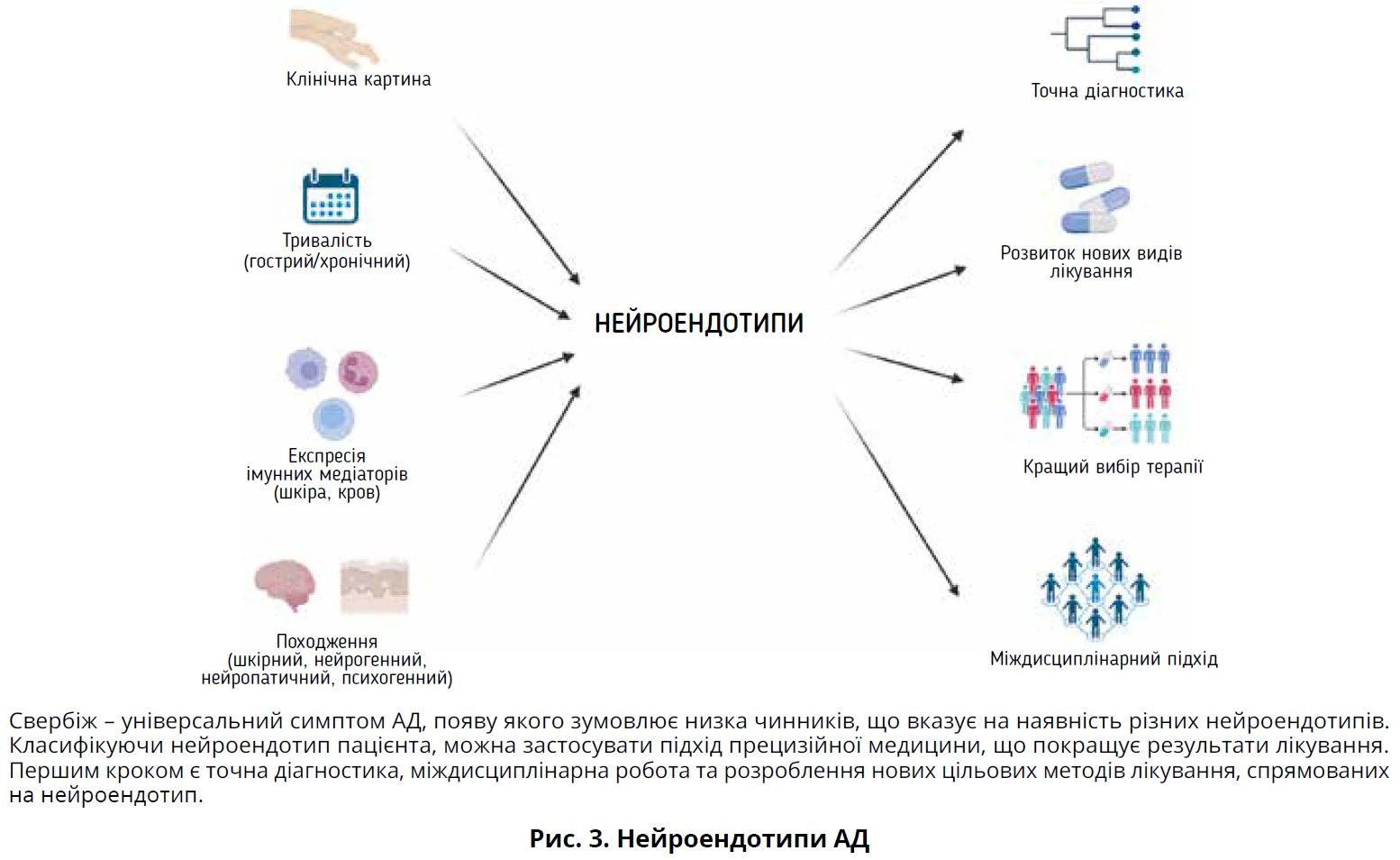 - Розроблення ефективніших стратегій ведення AД, зокрема зменшення свербіння та стигматизації пацієнтів: розуміння складної взаємодії між нервовою системою, імунною системою та шкірою.