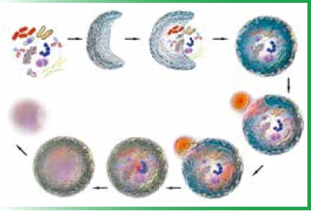 Макроавтофагія являє собою складний внутрішньоклітинний процес, який передбачає доставку складників клітини до лізосом та їх руйнування. Макроавтофагія на певному рівні відбувається в більшості тканин, забезпечуючи постійне оновлення компонентів клітини, проте стресові сигнали (нестача нутрієнтів, окисне ушкодження) сприяють посиленню цих процесів із метою отримання додаткової енергії для підтримки життєздатності клітини в несприятливих умовах. Системна чи тканиноспецифічна делеція асоційованих з автофагією генів може спричиняти тяжкі вади або навіть смерть, що підтверджує гіпотезу про важливість автофагії для підтримки здоров’я. Існує теорія, що порушення регуляції автофагії є одним із патогенетичних механізмів судинного старіння й асоційованих із ним патологічних станів (Nussenzweig et al., 2015). Доклінічні дані свідчать, що модифікація способу життя та зміни харчування реалізують свій сприятливий ефект завдяки нормалізації процесів макроавтофагії. На жаль, із віком автофагічна активність знижується у зв’язку з порушенням функції лізосом і зниженням експресії деяких ключових для автофагії генів.