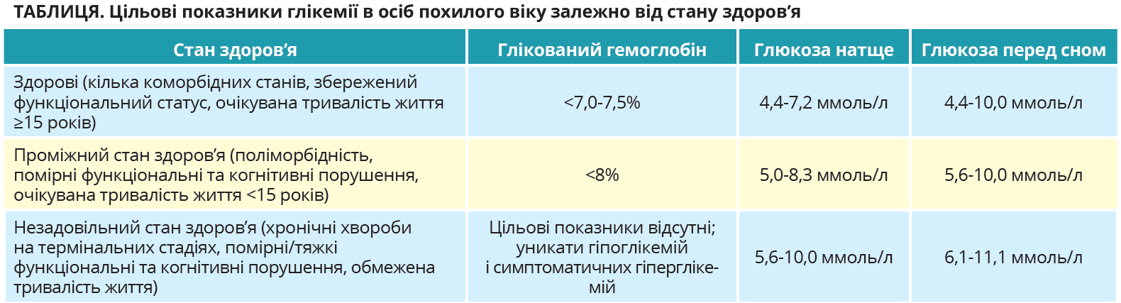 Як показують опитування, більшість лікарів (близько 80%) погоджуються з концепцією індивідуальних цільових показників HbA1c, однак реально практикують це близько 68%. Ситуація утруднюється ще й тим, що рекомендації зазвичай акцентують на інтенсифікації, а не на деінтенсифікації, яка, втім, є дуже важливою для пацієнтів похилого віку. Відповідно до огляду M.P. Oktora та співавт. (2021), деескалація є успішною в 57-100% випадків: рівні HbA1c зростають мінімально, а частота гіпоглікемій, особливо небезпечних для цього контингенту хворих, знижується. За даними іншого систематичного огляду, повне скасування, припинення або деінтенсифікація терапії не призводять до збільшення HbA1c, підвищення частоти госпіталізацій і мікроваскулярних подій, але покращують якість життя (Seidu S. et al., 2019).