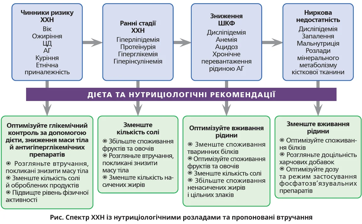У міру прогресування ХХН потреба в різних нутрієнтах та їхній метаболізм значно змінюються.