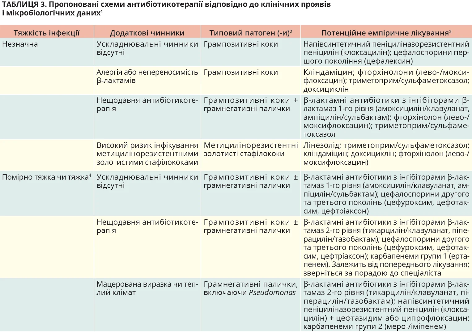В осіб з АДІС незначної тяжкості, які нещодавно не отримували антибіо­тикотерапії та проживають у Північній Америці або Західній Європі, обирайте препарати, що діють лише на аеробні грампозитивні патогени (β-гемолітичні стрептококи та золотисті стафілококи, включаючи метицилінорезистентні штами, якщо це показано).