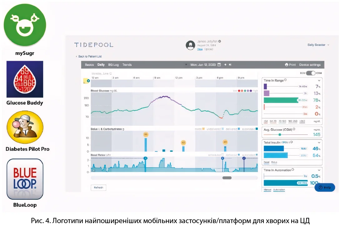 На особливу увагу заслуговує платформа Tidepool, яка об’єднує дані з різних діабетичних пристроїв (ТМГ, інсулінова помпа, звичайний глюкометр) і застосовує аналітичні алгоритми, машинне навчання для спрощення інтерпретації даних як для пацієнтів, так і для лікарів. Її найближчим опонентом є цифрова платформа Glooko від однойменної компанії (США), яка також збирає й аналізує дані з різних пристроїв (у тому числі від Dexcom, Abbott, Medtronic) і надає ШІ-аналітичні дані для користувачів.