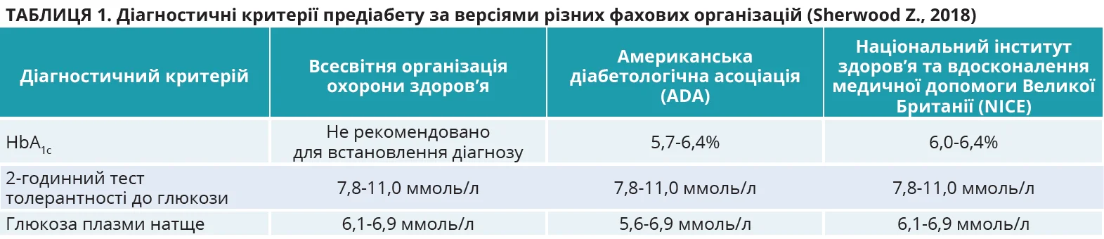 Критеріями предіабету та ЦД виступають патологічні зміни рівня глюкози плазми крові натще, глюкозотолерантного тесту та глікованого гемо­глобіну (HbA1c) (табл. 1).