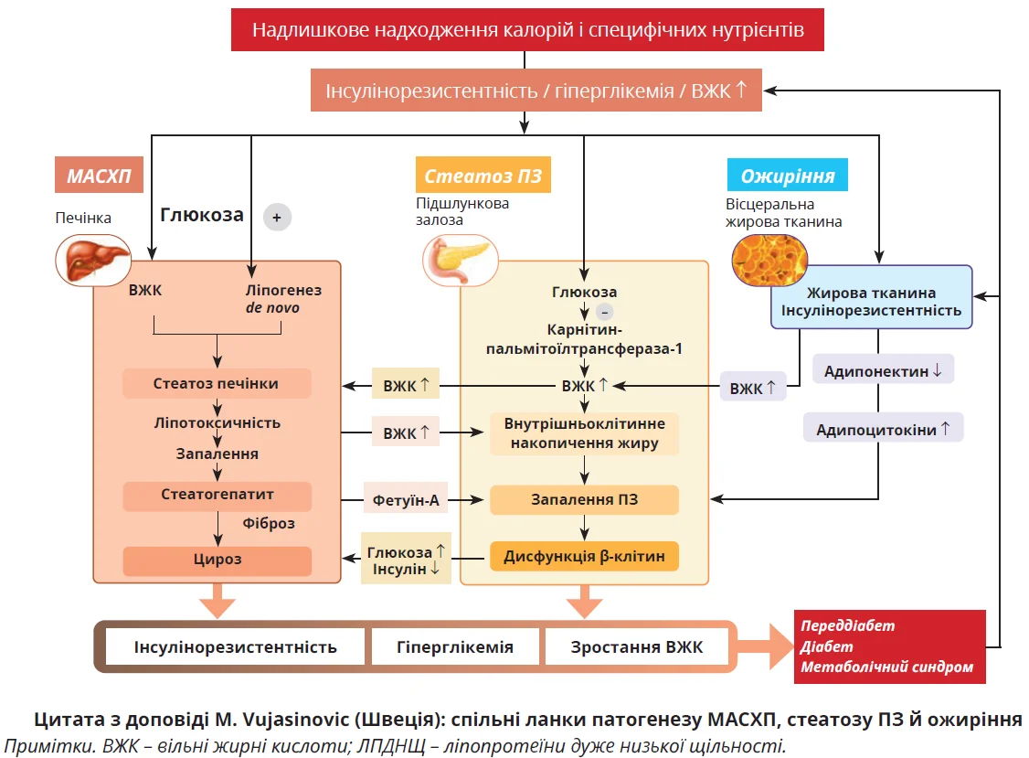 Серед сателітних симпозіумів слід відзначити зустріч, присвячену темі «Нутритивні та метаболічні виклики при хворобах ПЗ», під час якої делегати обговорювали сучасні погляди на жирову хворобу ПЗ (ЖХПЗ). Яскраву доповідь «Відкриваючи ЖХПЗ: діагностика, клінічне значення та терапевтичні обмеження» представив професор Miroslav Vujasinovic (Швеція). Він підкреслив подібність патогенетичних ланок у розвитку трьох хвороб: метаболічно-асоційованої стеатотичної хвороби печінки (МАСХП), ожиріння та ЖХПЗ. Проводячи паралелі між цими патологіями, доповідач розкрив і головні відмінності. На відміну від МАСХП, ЖХПЗ залишається недостатньо вивченою, тому досі не розроблені міжнародні рекомендації з діагностики та лікування стеатозу ПЗ, відсутні чіткі гістологічні критерії (які важко розробити через специфіку гістологічної будови ПЗ), остаточні дані щодо клінічної значущості ЕНПЗ. Нині активно досліджується важливе питання: чи є стеатотичне ураження ПЗ наслідком метаболічних порушень в організмі та його можна ігнорувати, чи ЖХПЗ має особливе клінічне значення? Тривають пошуки можливих зв’язків між ЖХПЗ та розвитком ЕНПЗ, адже логічно припустити, що стеатоз ПЗ може призвести до виникнення ЕНПЗ.