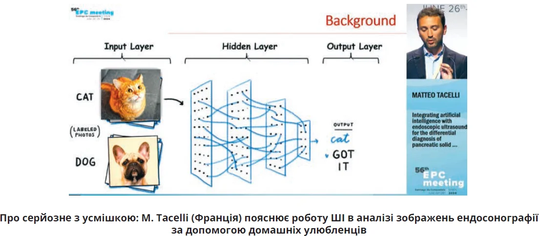 Панкреатологи йдуть у ногу з часом і намагаються використовувати у своїй практичній діяльності не лише інноваційні технічні пристрої, а й сучасні технології на базі штучного інтелекту (ШІ). Інтерес до ШІ в усьому світі надзвичайно високий і продовжує швидко зростати переважно через створення великих цифрових баз даних. Увазі делегатів було представлено дві доповіді, автори яких активно працювали над створенням моделей ШІ та їх використанням у клінічній практиці. Matteo Tacelli (Франція) поділився результатами застосування ШІ разом з ендоскопічною ультрасонографією для диференціювання солідних неоплазій ПЗ, а Sergio Sabroso-Lasa (Іспанія) охарактеризував можливості використання ШІ для аналізу біомедичних зображень. Французькі вчені протягом 2 років за допомогою ШІ ретроспективно аналізували дані ендосонографії ПЗ 362 пацієнтів і створили дві діагностичні моделі, здатні розрізнити ПАПЗ від нейроендокринних пухлин ПЗ ще під час проведення ендосонографії. Діагностична значущість створених моделей коливалася в межах 71-74%. Отримані результати науковці не вважають цілковито успішними, але з огляду на характер вхідних даних (ретроспективний аналіз зображень) прогнозують значне впровадження цієї методики в майбутньому при виконанні еластографії, ендосонографії та інших візуалізаційних досліджень.