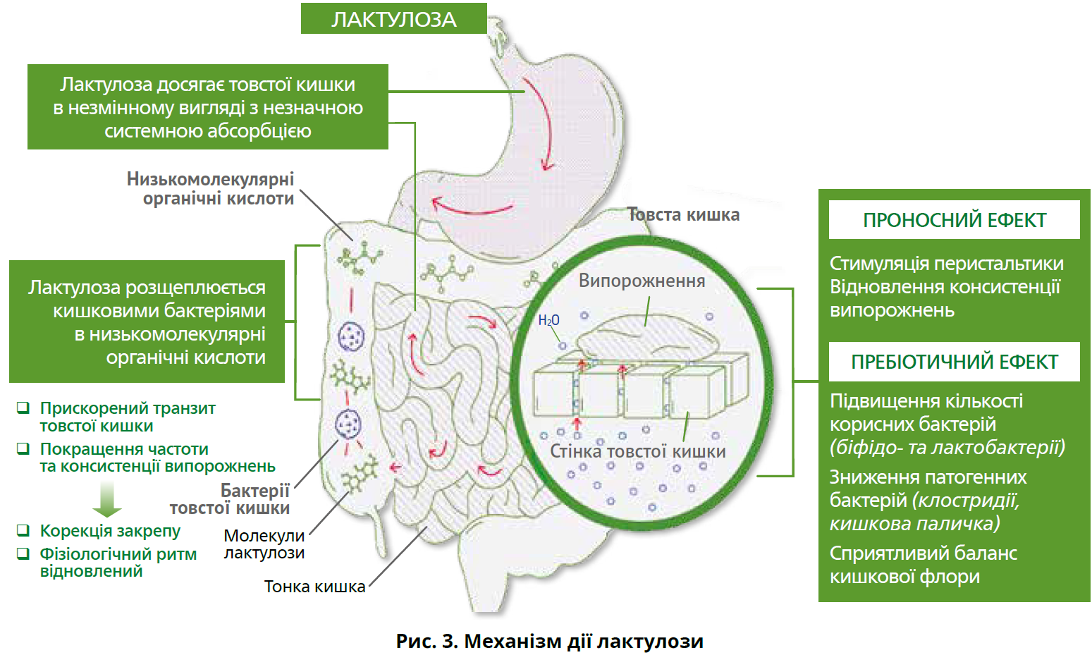 Лактулоза – осмотичне проносне, сприяє стимуляції дефекації, розм’якшенню випорожнень і прискоренню кишкового транзиту (рис. 3).